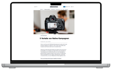 Native Kampagnen sind werbliche Inhalte, die sich nahtlos und thematisch passend in unser redaktionelles Umfeld einfügen. Sie werden von unseren Profis im Produktionsteam konzipiert und umgesetzt. Mit einer Native Kampagne verbinden wir Ihre Markenbotschaft mit hochwertigen, glaubwürdigem Content.